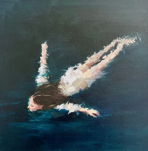Cherylene works primarily in oils, her paintings combine traditional techniques such as glazing and scumbling, with evocative storytelling, creating works that feel both intimate and enigmatic. Her subjects often appear simple at first glance; a woman in a swimming cap, a man singing among birds, but beneath these surfaces lie deeper narratives of vulnerability, longing, and authenticity.